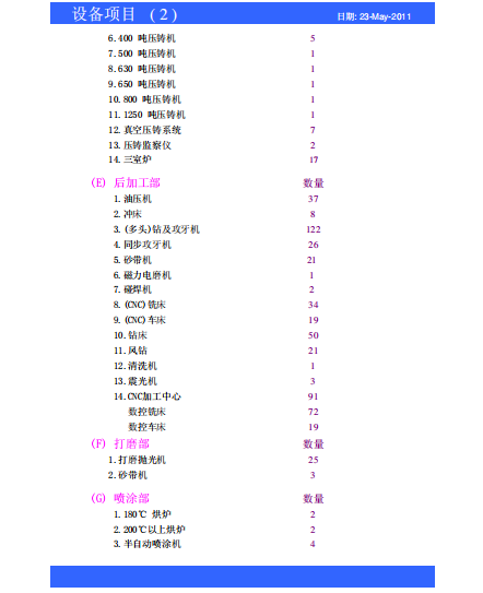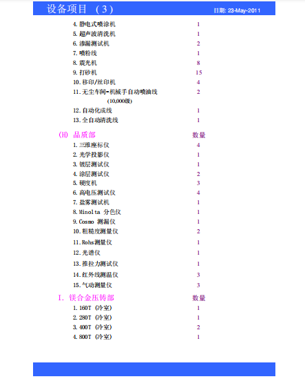 Production Equipment List